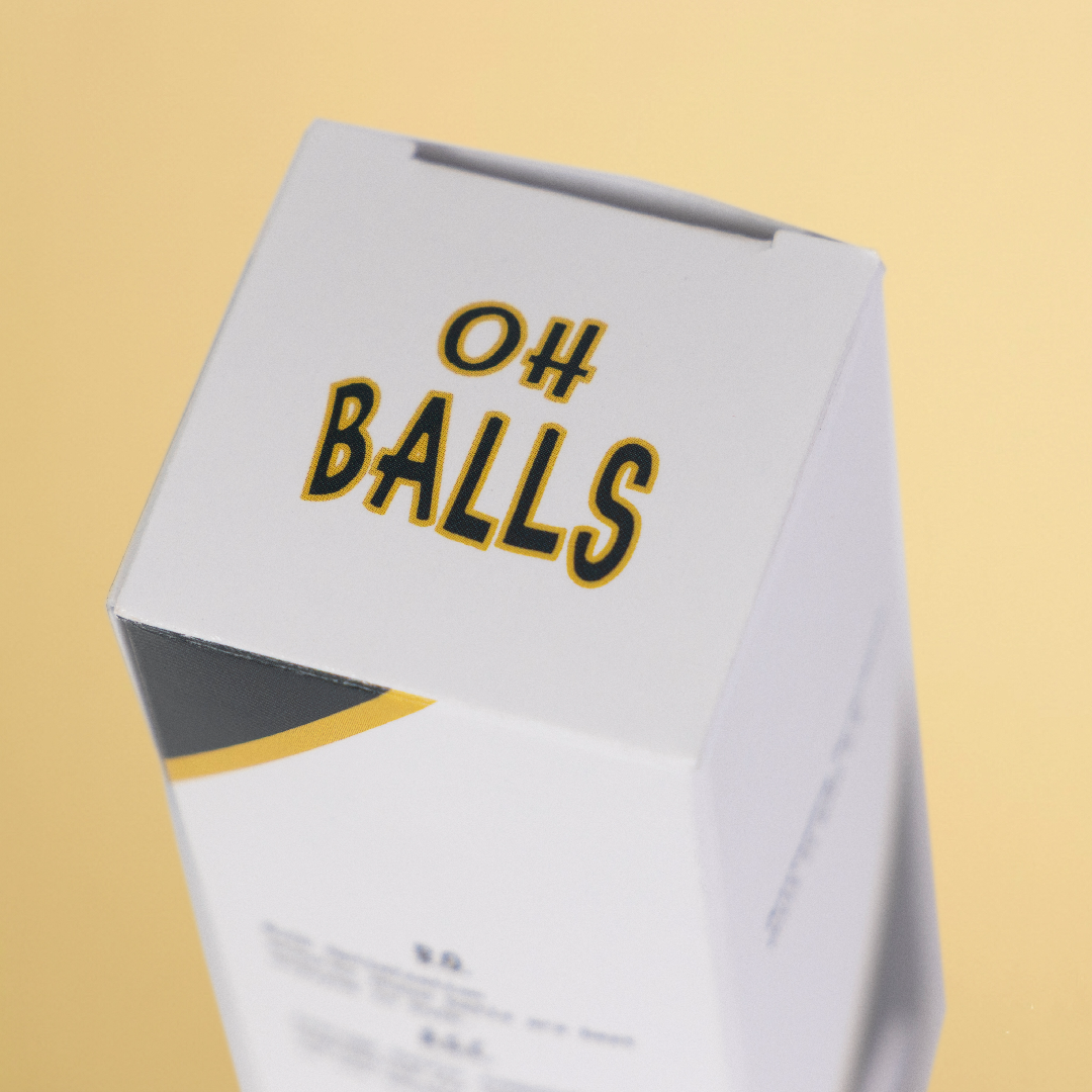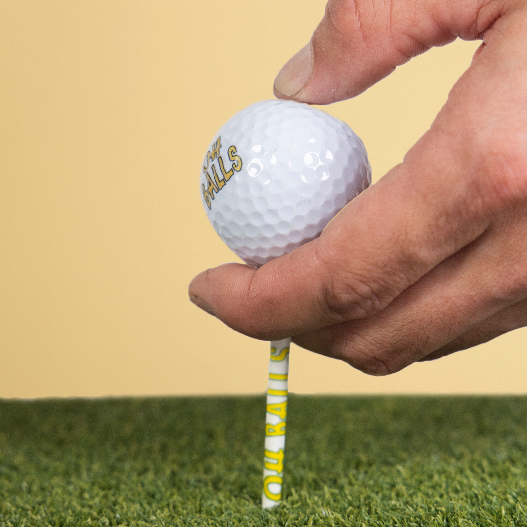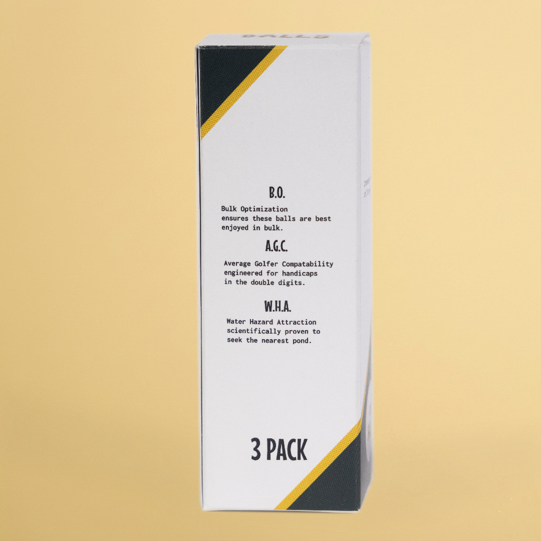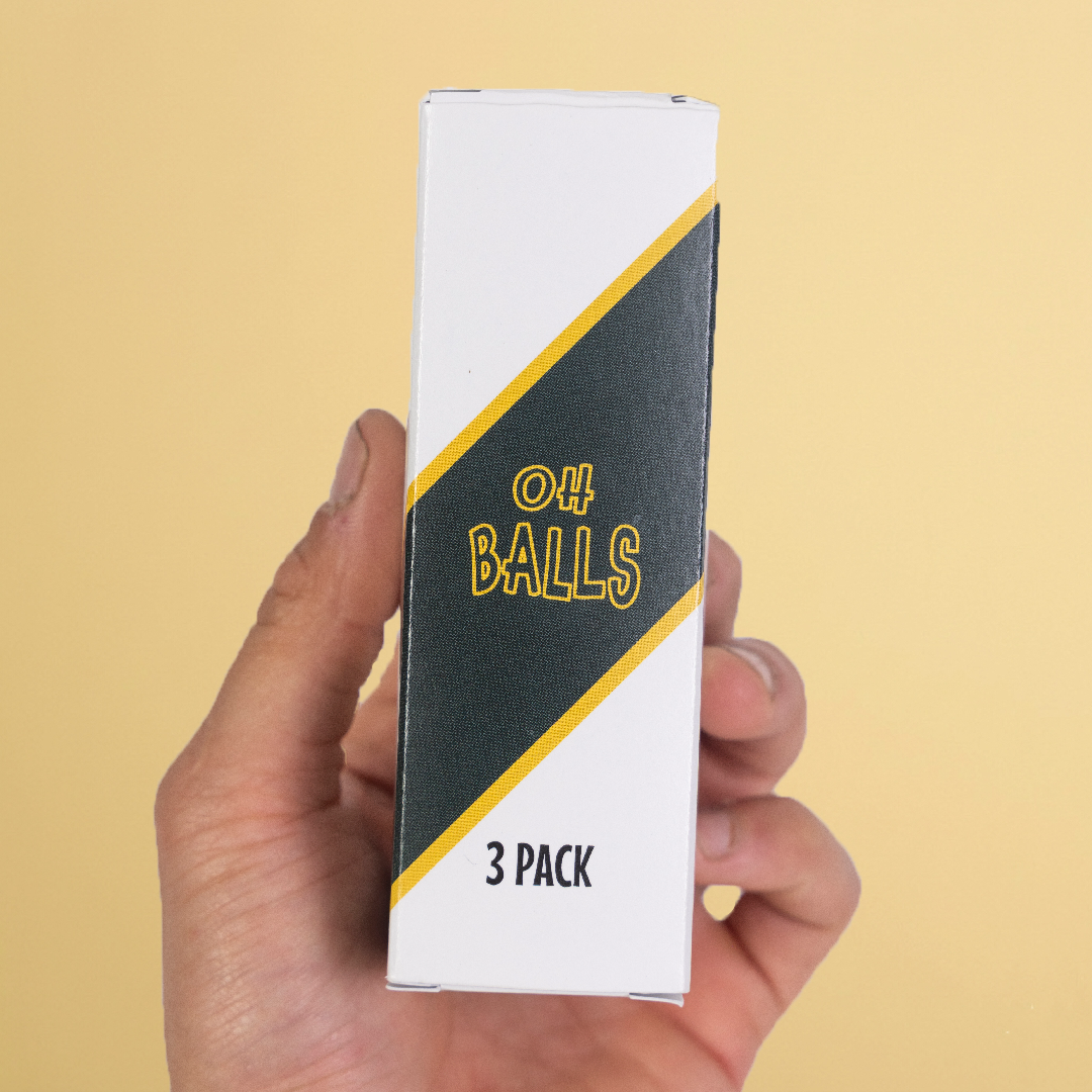 Our Signature Golf Balls (3-Pack) feature Oh Balls printed on one side and the OB logo on the